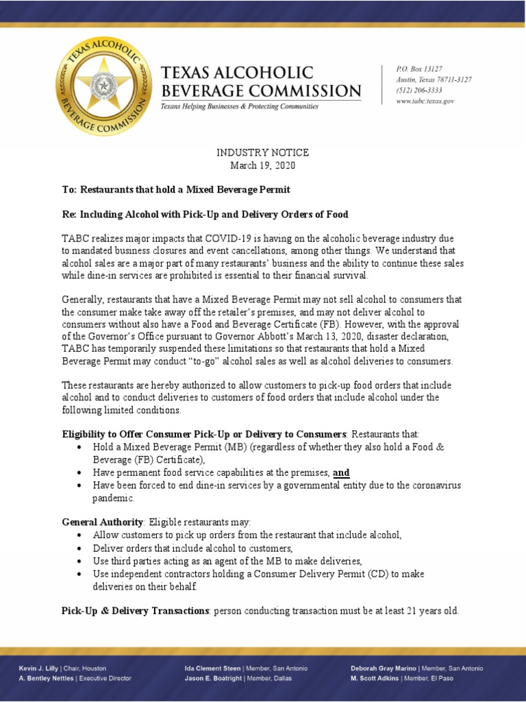 Coronavirus Restaurants Hoping For Change In Gov Abbott S Waiver On Alcohol Delivery And Carryout Kvue Com